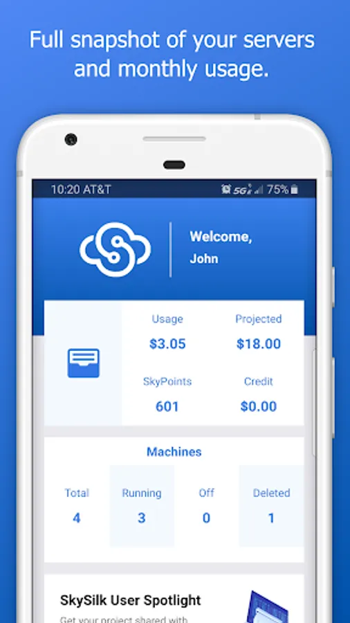 SkySilk is a cloud hosting service to deploy VPS (Virtual Private Servers). Connect to your SkySilk account using the dedicated mobile app to deploy, control, manage, and monitor your SkySilk VPS.