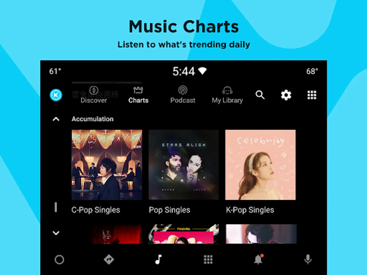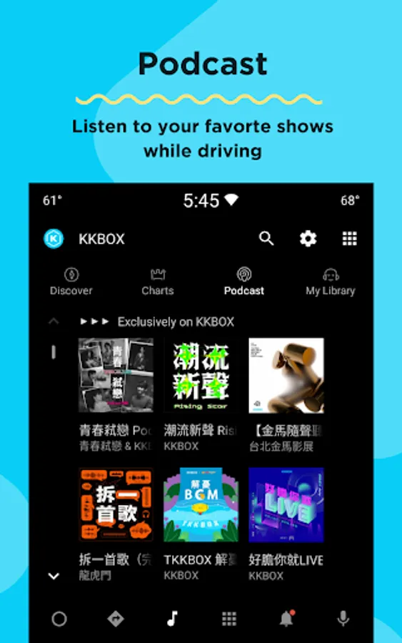 Enjoy KKBOX on mobile, tablet, automobile, PC, smart TV, audio-controlled speakers and Wear OS smart watches !