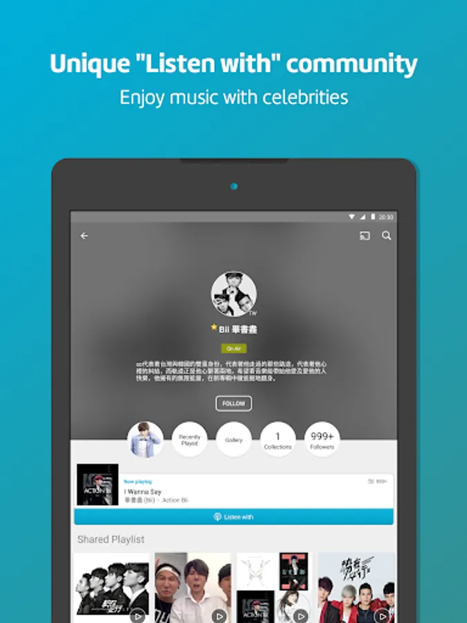 Dive into your very own world of music, where over 100 million songs await you. Take your pick from Chinese, Cantonese, English, Japanese or Korean songs. Our expanded library now includes audiobooks and podcasts — free for listening.