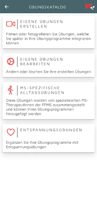 The app provides important information and recommendations about MS, about life with MS and about sports and training in MS in a compact form.