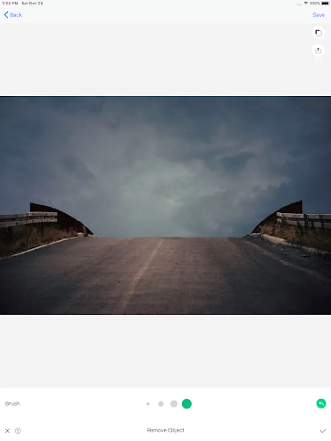 - Delete human-made objects like stop lights, street signs, trash cans, cloth, watermark