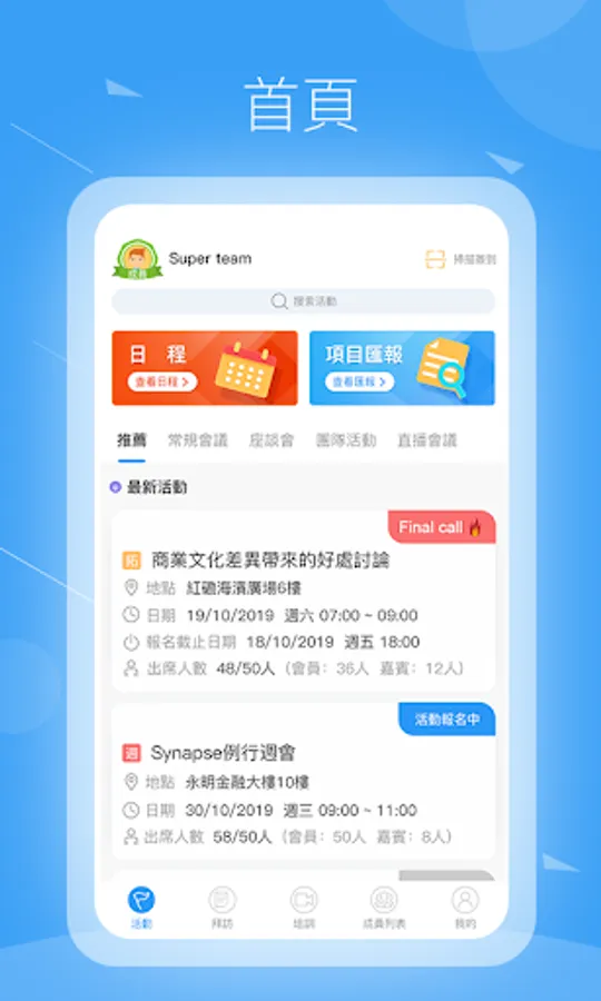 This app is designed to provide information on business activities and network connections. App allows users to sign up for various types of business meetings and dock various resources. You can also view the various types of contacts in the business meeting in the app. Thereby gaining connections and business opportunities.