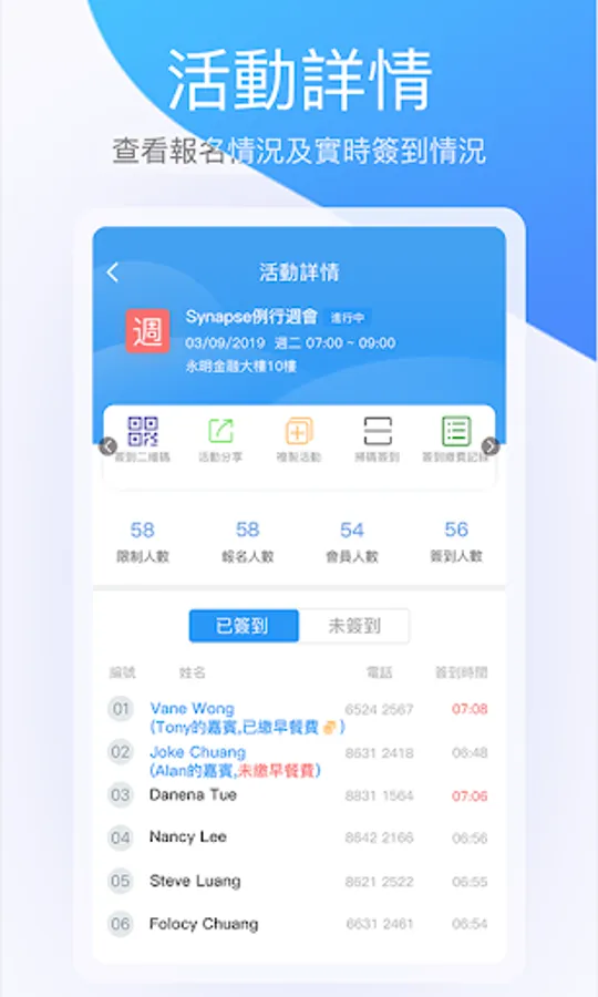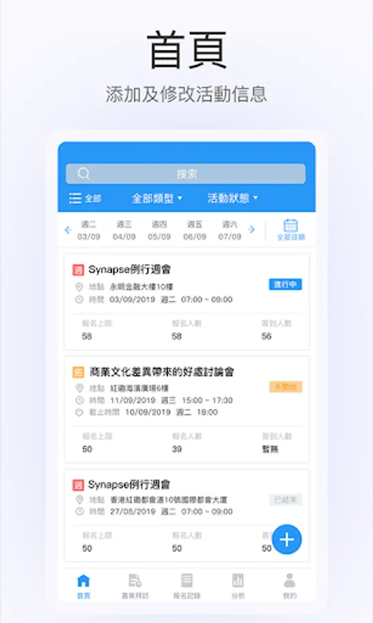 此App旨在提供銷售團隊活動簽到,報表分析的管理。 管理團隊的活動報名情況,培訓情況和拜訪情況。 掌握各個環節的分析報表。