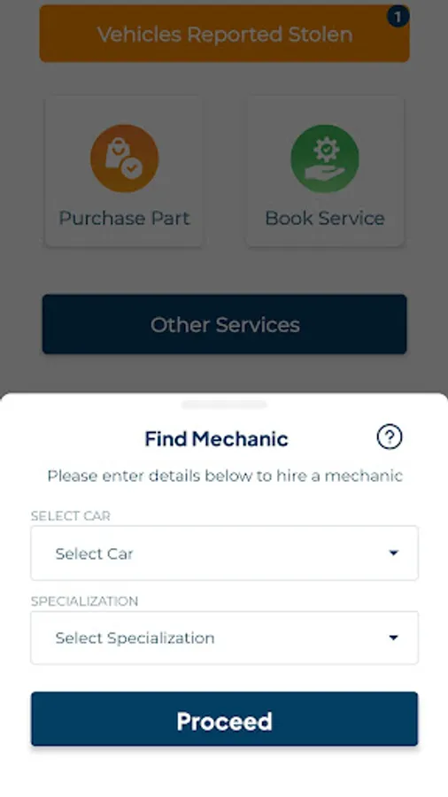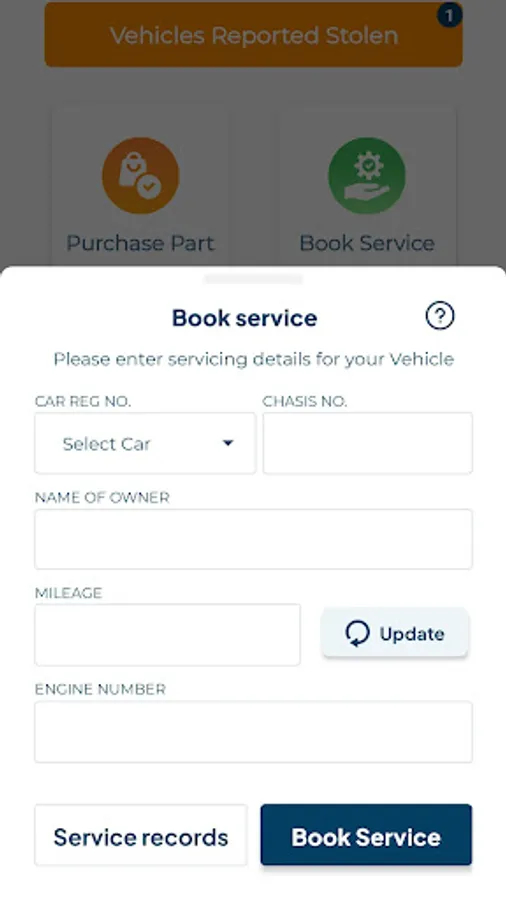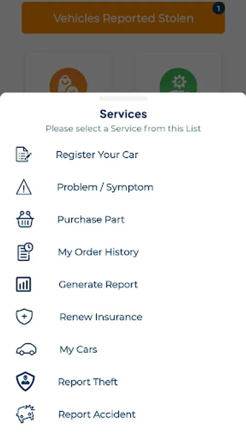 The ‘Stolen Vehicle’ button is a real-time display of vehicles reported stolen by mCarFix users. Once posted all Mcarfix App users; including police and Insurance providers, are instantly notified.