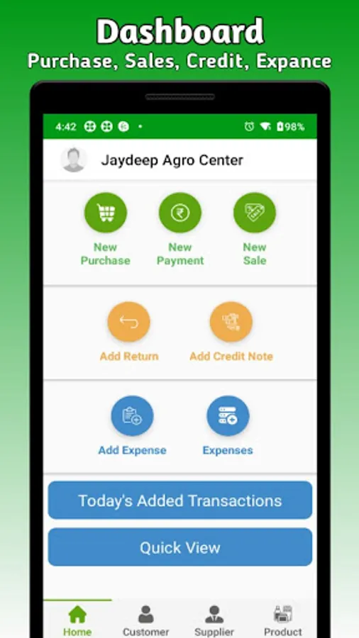 First step is to add product details, then step by step add customer, sales, purchase and vendor details in to the app so in future you can quickly check and manage your Stock, payments, turnover, sales, purchase.... in sort account and inventory, App would guide you to enter detail systematically.