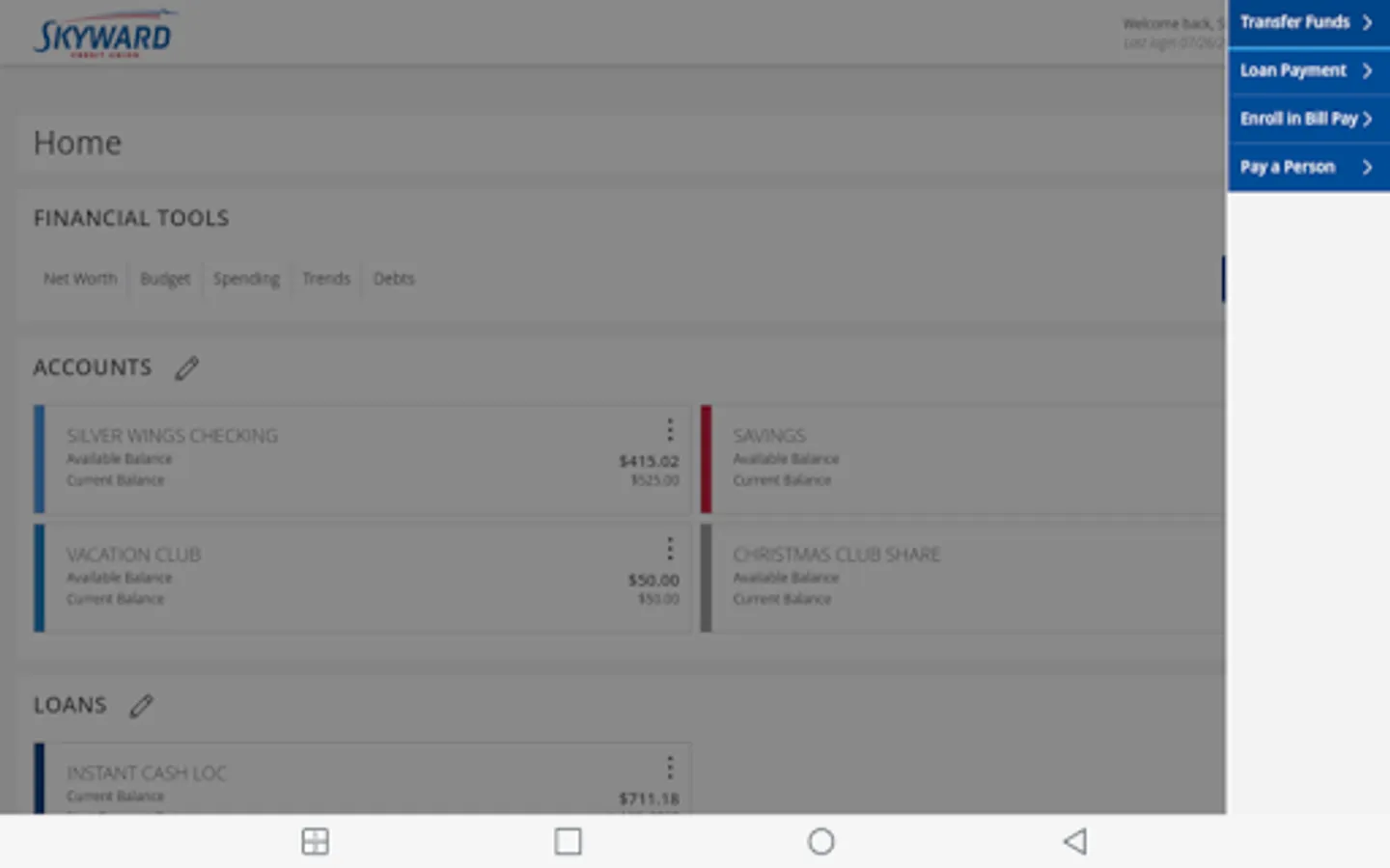 The Skyward CU Mobile app makes managing your money fast, convenient and secure. Use the Skyward Credit Union Mobile app to check balances, make transfers, pay bills, send other people money, deposit checks, set security alerts, manage your cards and much more! Use the app to find branch locations and surcharge-free CO-OP Network ATMs and shared branching locations across the USA.