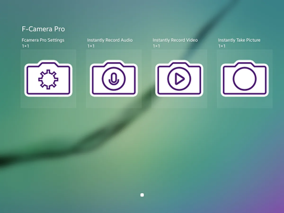 ✓ 4 widgets for taking picture, recording video, recording audio and adjusting settings.