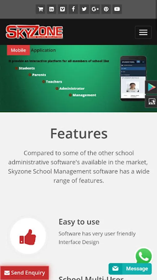 School Management Software is unique and comprehensive school software. School Management Software provides the facility to carry out all day to day activities of the school, making them fast, easy, efficient and accurate. The primary functionality of this school management software which helps the school to manage complex functions such as Student, fees, results, attendance, library, staff, transport, examination, hostel, parents. It will manage your school as you want, Starting from admissions to attendance and exams to result cards..