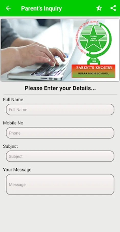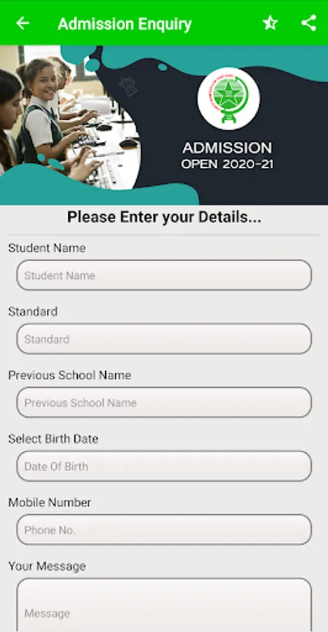 11. ADDMISSION ENQUIRY : Admission Enquiry form for New student for school.