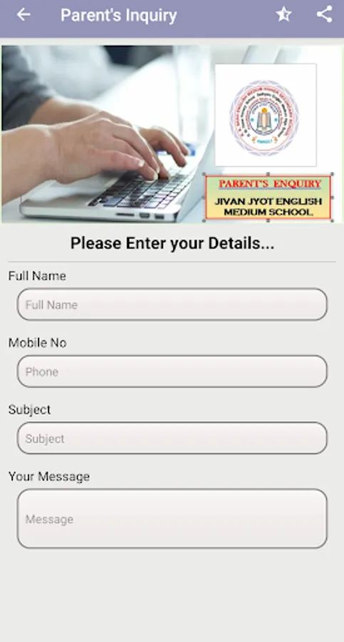 11. ADDMISSION ENQUIRY : Admission Enquiry form for New student for school.