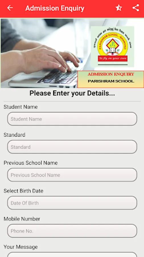 11. ADDMISSION ENQUIRY : Admission Enquiry form for New student for school.