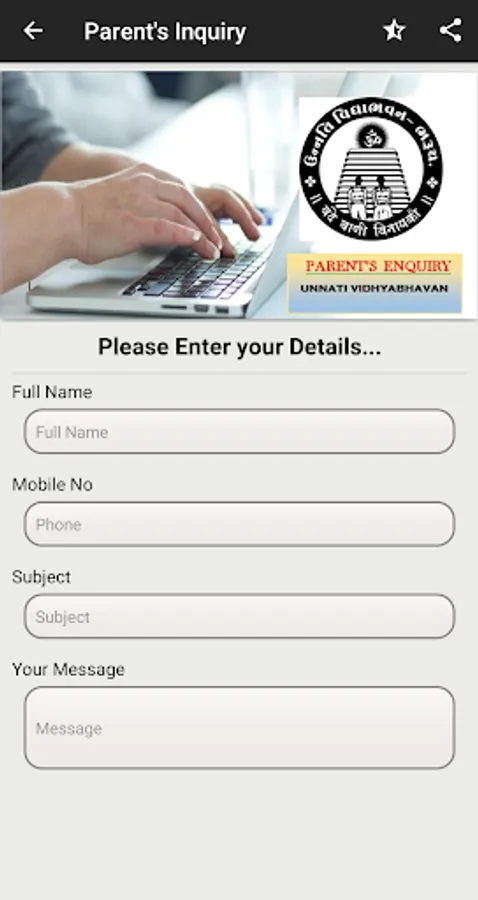11. ADDMISSION ENQUIRY : Admission Enquiry form for New student for school.