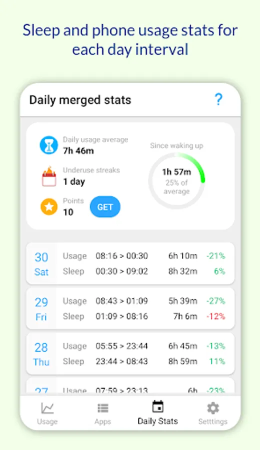 When enabled for an app, anytime you open it or switch to it a short break (30s to 1m) prevent you from using it. This small discomfort starts reducing your habit of checking apps frequently. We are used to opening certain apps with an absent mind so Skreentime can intervene and disrupt this unhealthy habit