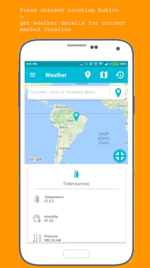 Click anywhere in the world map and hit the marker see the top feed contain your temperature details.