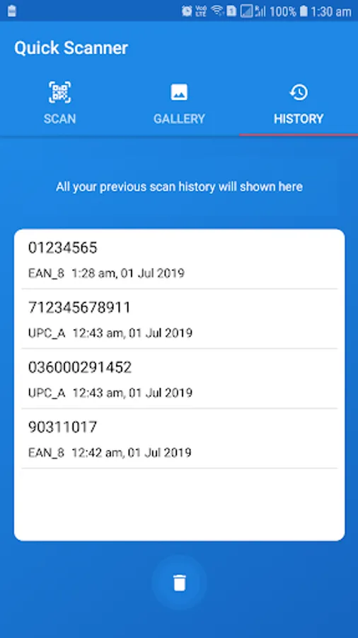 Whenever you are scanning something it will maintain a record of your scans history so you no need to worry about your favorite scan lost or you are not able to get the code again. After scanning your scan history will be available on the home screen itself so it will easy for you to access next time you opened.