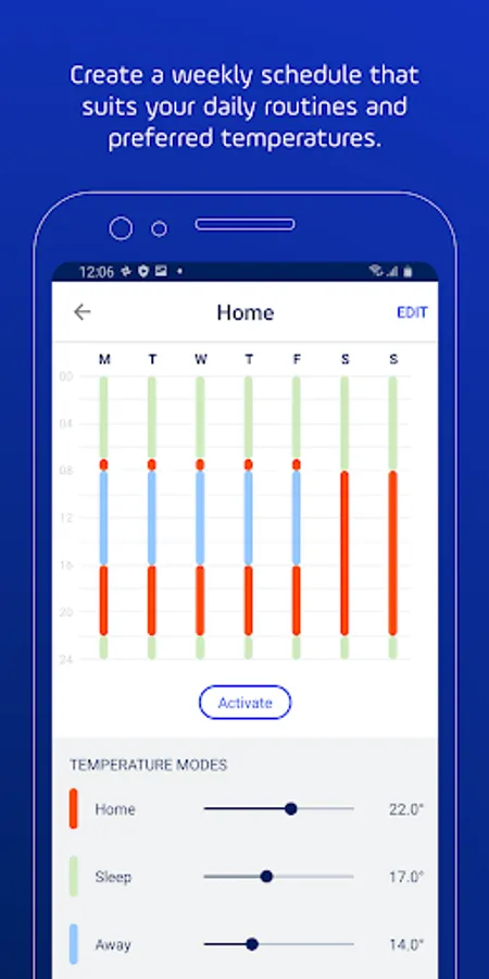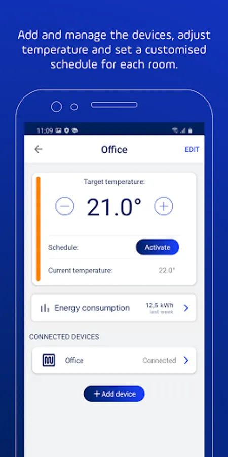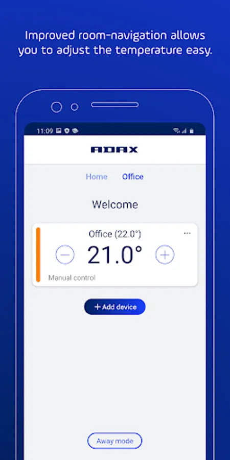 With the Adax WiFi app you can control and manage your Adax WiFi heaters directly on your phone. Create schedules to make the heating adapt to your daily routines, Home, Sleep and Away.