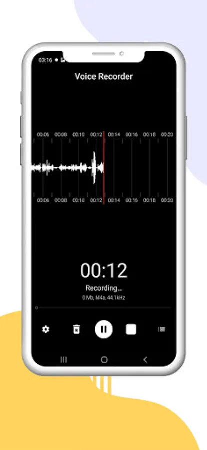 The user interface is simple and easy to navigate, but again provides a lot of information. This way, you will find recording commands on the home screen (the recorder also supports pause), with a timer and a display of current sound preferences. The voice recorder also supports a graphical display of the audio currently being recorded.