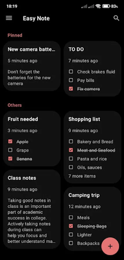Checklists are ideal for making shopping lists or to-do lists. Using this type of note is very simple and practical due to the possibility of change in movement. All items in the checklist can be ticked and crossed out, as well as change the position in the list due to priority. Also, a tag or name can be added to each checklist for later retrieval, and the date of the change will be recorded automatically. And there are ordinary notes. Here you can write all your notes, lyrics, or lectures without restrictions.