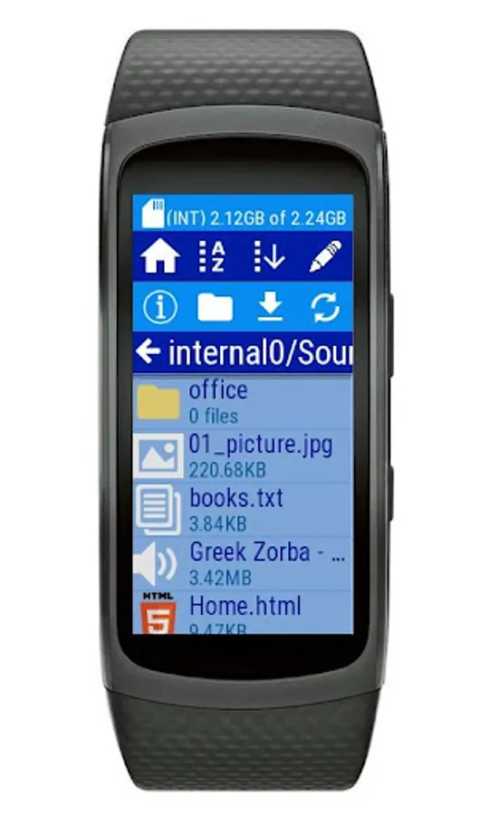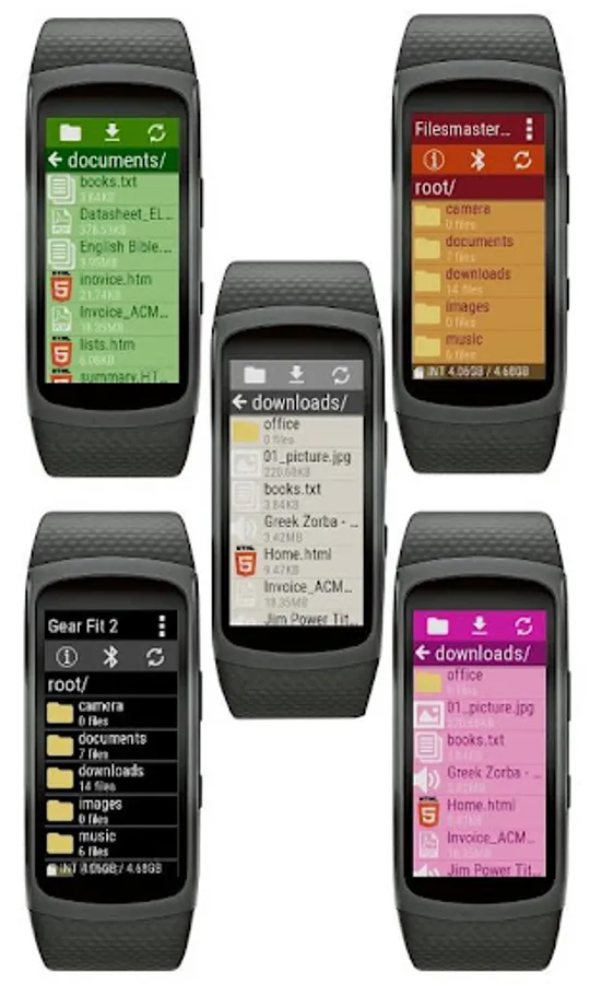 Filesmaster is basic app and the only file manager for Gear Fit 2/Pro. FM allows to transfer files between your Gear and phone, computer or another Gear via Bluetooth or Wifi networks. Afterwards you can open these files inside FM – you don't need extra app.