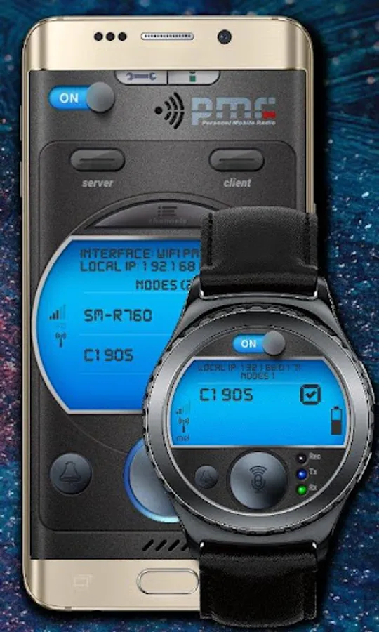 Since version 3.1 PMR WT allows to connect to Samsung Gear/Galaxy smartwatches via interface Wifi PMR. To establish Walkie Talkie connection between phone and Samsung smartwatch you have to install PMR Walkie Talkie from Samsung Galaxy Apps store for smartwatches.