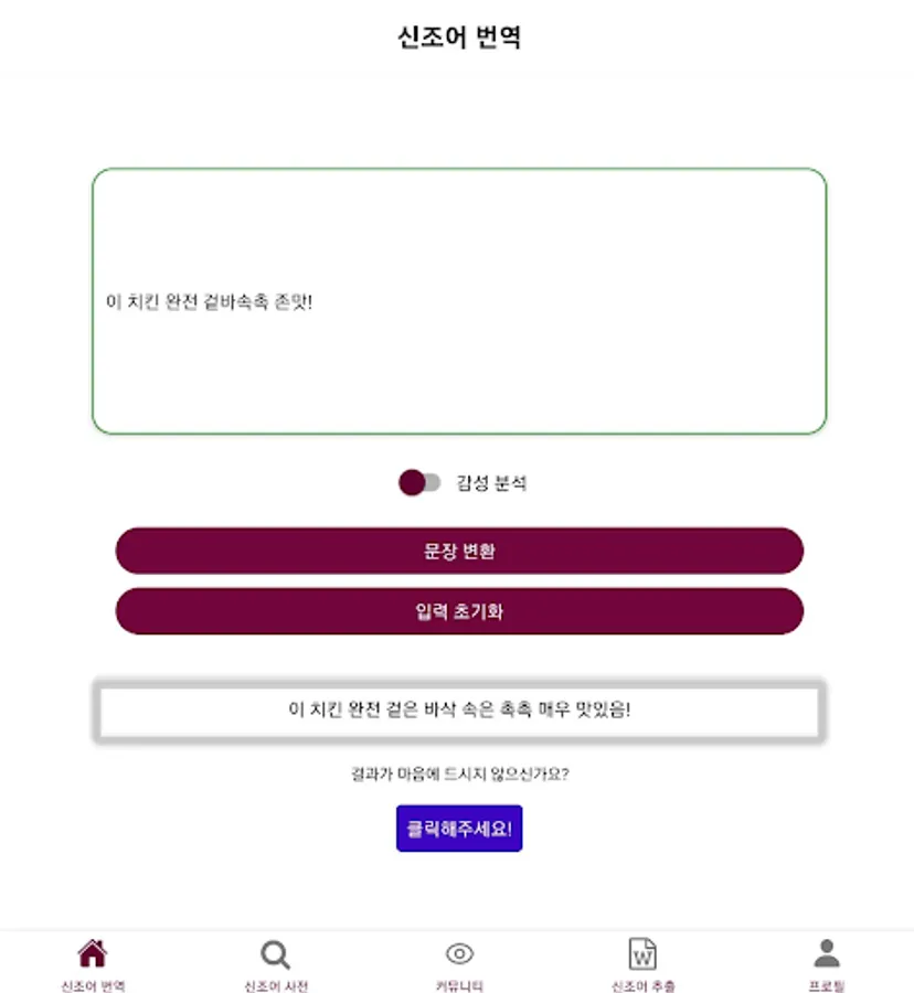 The “Sweet Language Detection and Conversion App” is a system for people who are not familiar with slang, and it is a system that helps communication by providing an alternative language and translating it so that they can easily understand slang.
