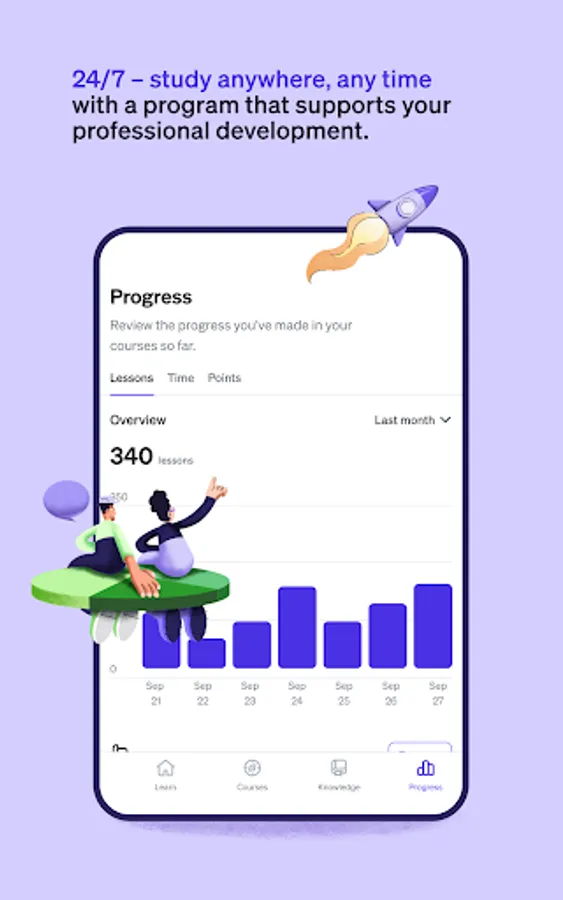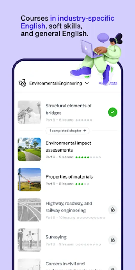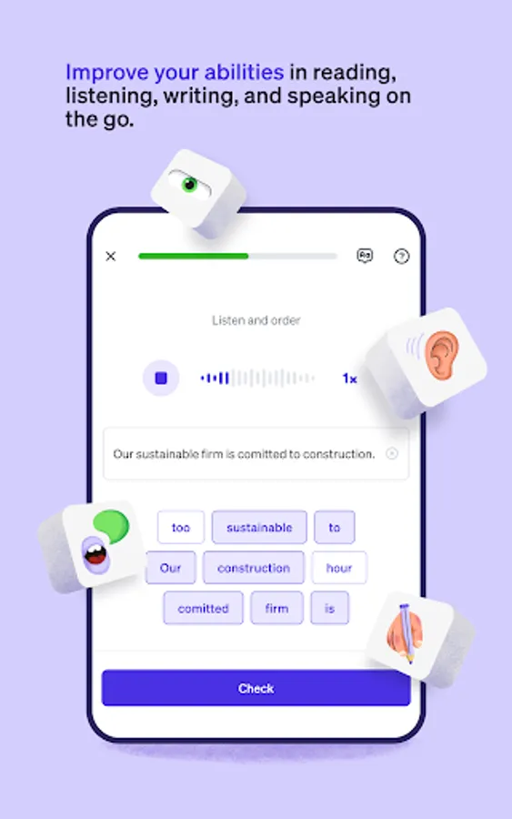 • A lifelong learning companion: your knowledge syncs across all of our English courses, so you can easily study new topics without repeating content.