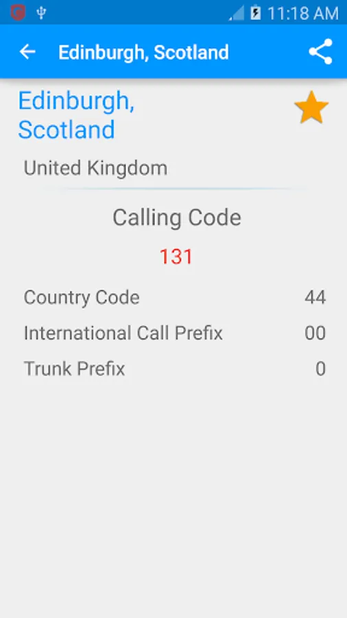 The Country code, IDD/Exit Code and Trunk code are also included.