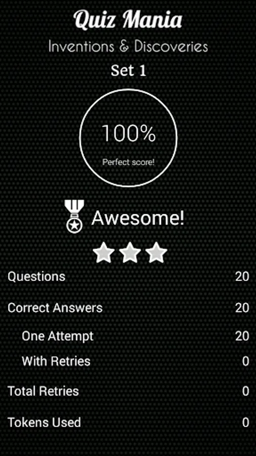 1. Complete a Set with 100% accuracy without using a 'Retry' token to earn all the Stars.