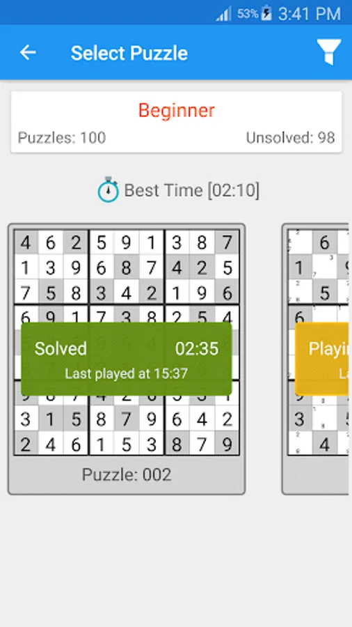 * Filter Puzzles - Filter puzzles based on their State that is, Playing, Not Started and Solved in Puzzle Selector