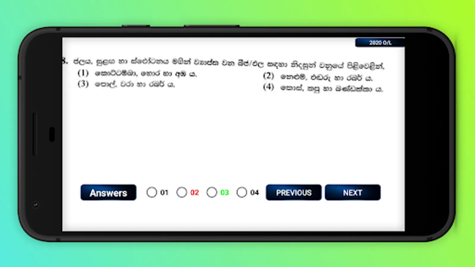 We have created this app (O/L Science MCQ Sinhala) to facilitate GCE Ordinary Level Science (OL Science) students to face the MCQ Question Papers online for the past few years. Here, we have tried our best to give you an experience similar to the one you get in the exam.