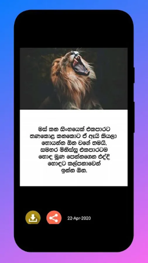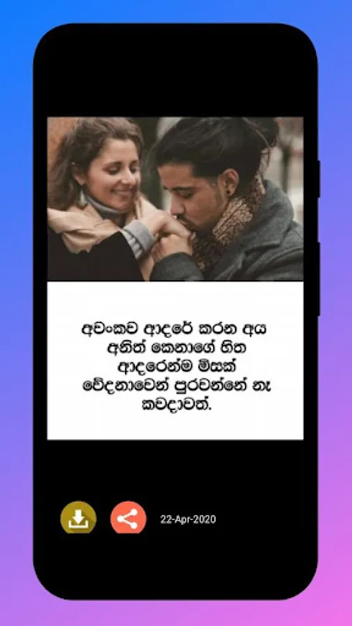 In this app, we have published most shared and viewed Sinhala Quotes on FB under following categories.