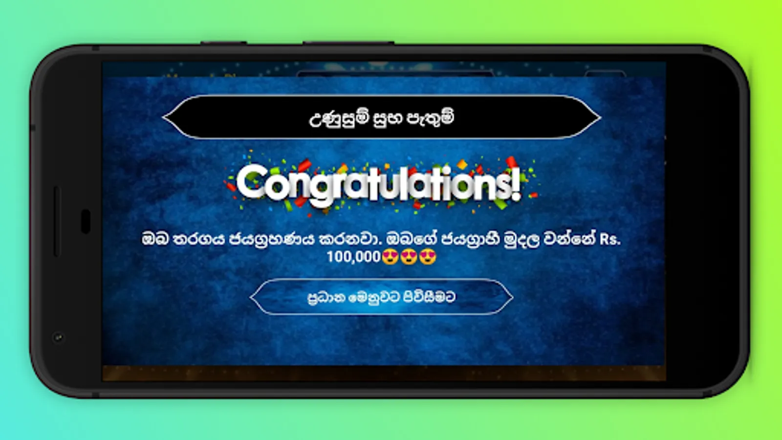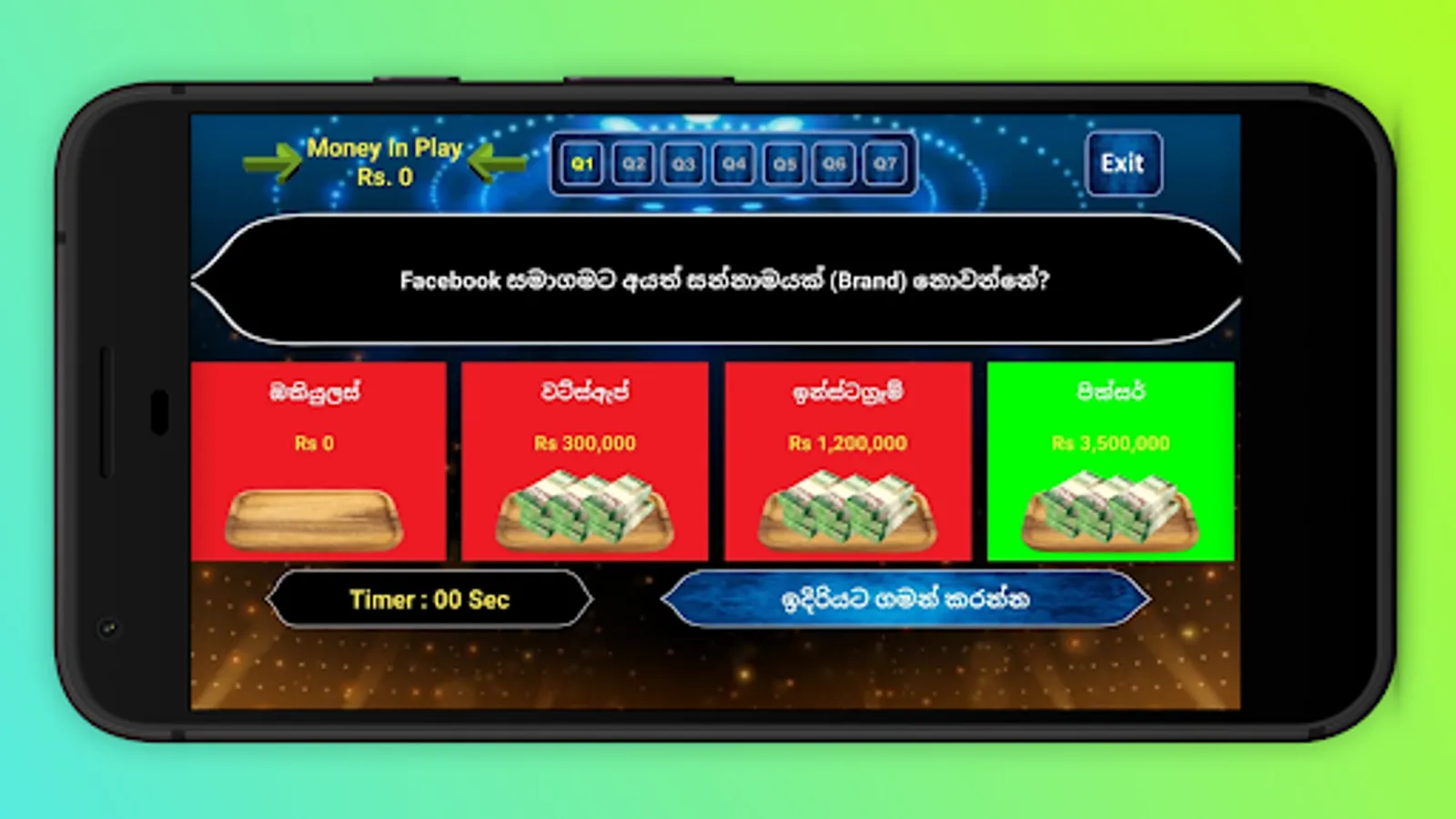 මෙලෙස ඔබට ප්රශ්න 7ටම සාර්ථකව පිළිතුරු ලබාදිය හැකිවුවහොත්, අවසානයේදී ඔබ අත ඉතිරිවූ මුදල ජයග්රාහී මුදල ලෙස හිමිවේ.