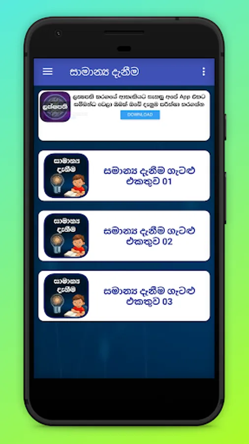 සාමාන්ය දැනුම (Samnya Danima) ගවේෂණය කරනා ඔබ සදහාම වෙන්වූ මෙම App එකට ඔයාලත් දැන්ම එකතු වෙන්න.