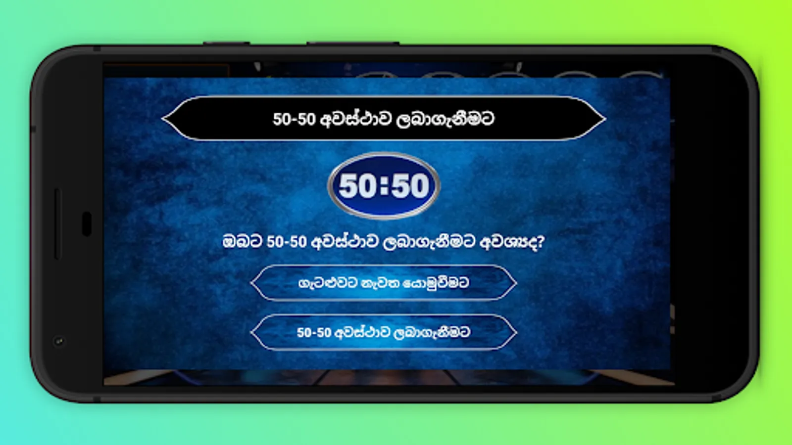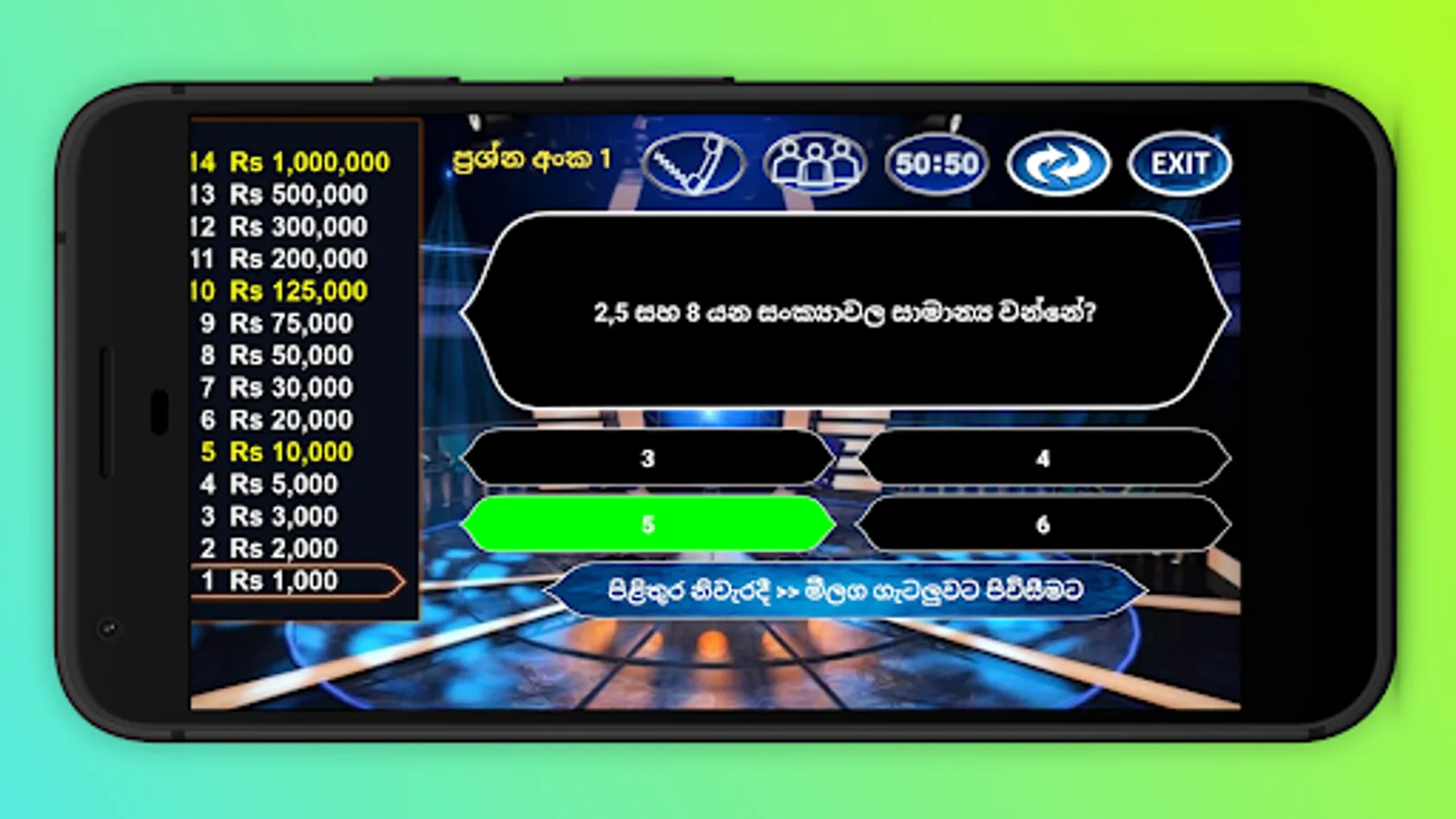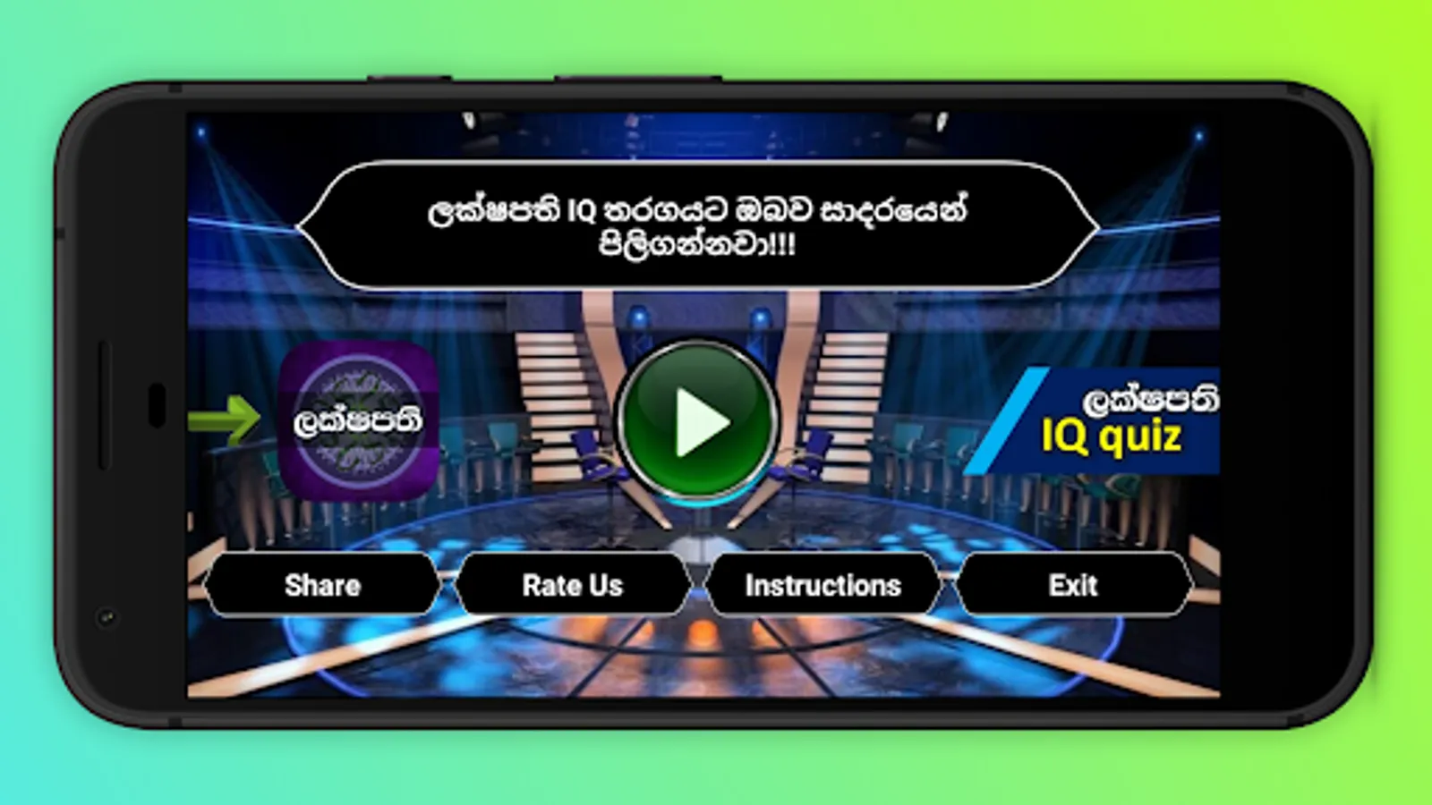 In this app (Lakshapathi Game IQ Knowledge), we have included a set of IQ questions and given you a chance to test your IQ level. All the steps of this game are designed very similarly to the Lakshapathi Sinhala Programme and "Who wants to be a Millionaire?" international program. So by using this app you will be able to gain international experience and good IQ knowledge.