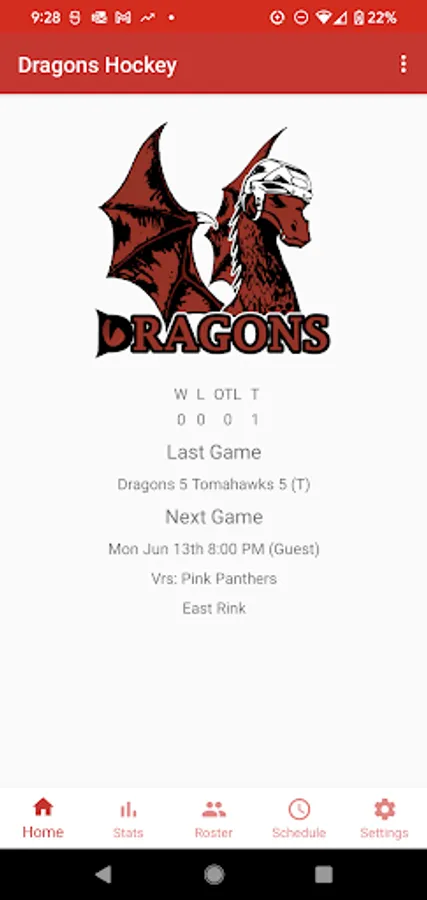 An application for the Dragons Roller hockey team to help with the team schedule, stats and roster.