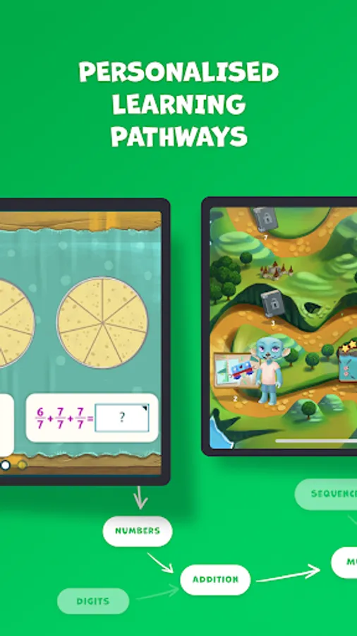 Set on Matific’s magical adventure islands, our app’s adaptive game play lets kids explore new worlds, unlock hidden levels, navigate challenges and collect treasure, all while learning math!