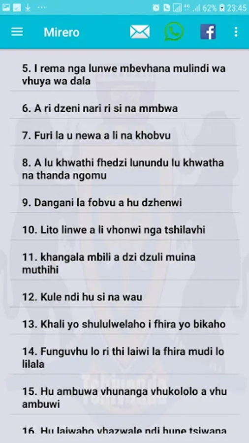 This app is intended to be used by people who want to learn the Tshivenda language and those who already speak the language.
