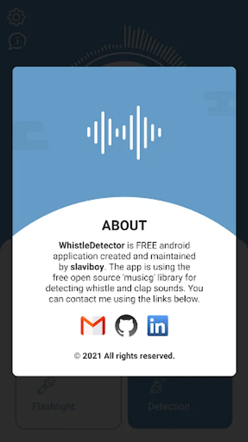 The app is using Foreground Service that is started once the application is about to be closed and is constantly listening for whistles. This means that the app will consume large amount of your phone/tablet battery. For people who are more knowledgeable there is 'Analyser' section in the settings. From there you can choose different configurations, but if you don't know what you are doing you can make the app detect false whistle detection or prevent any detection at all. In that case simply press the 'Reset' button to use the default configurations.