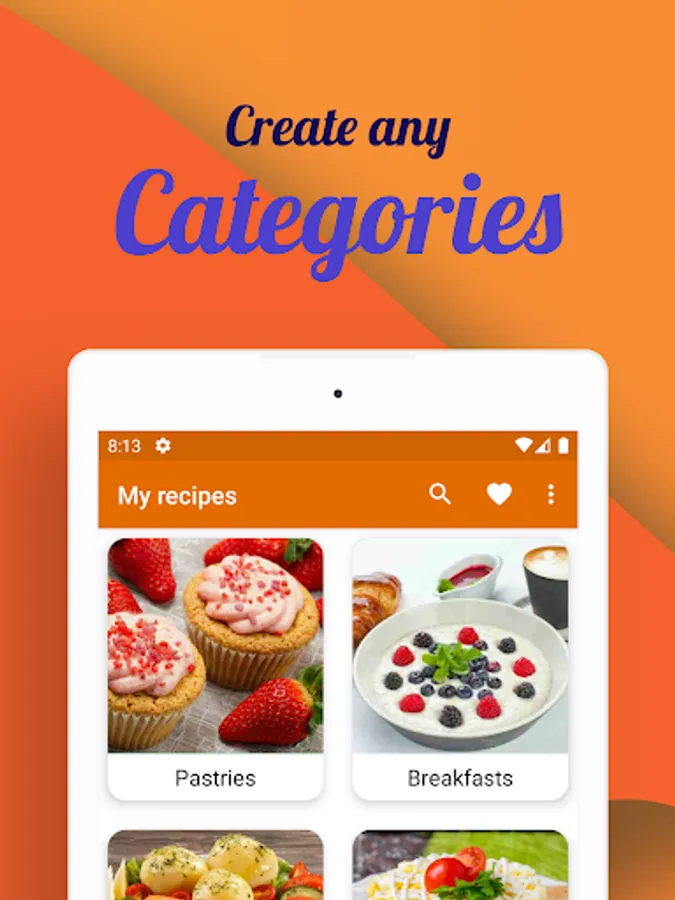 This is a beautiful cookbook for storing recipes for any dishes. Allows you to customize the categories of dishes with pictures, fill recipes with cooking photos!