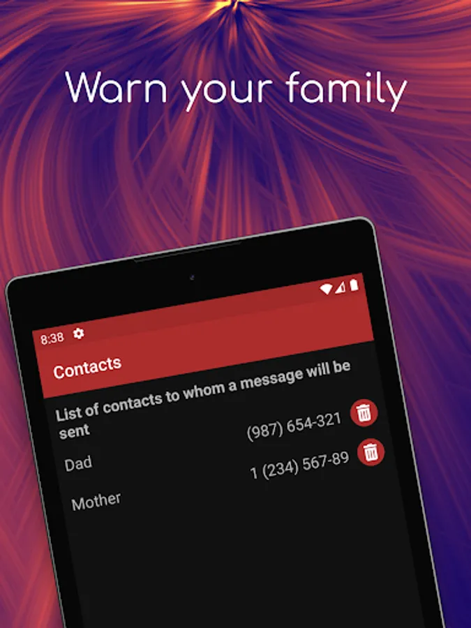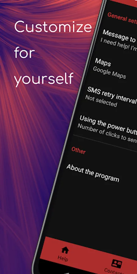 You add the phones of people you trust from the phone’s contact list. This is enough for the application to start working. If something bad happened to you or you need help (I hope this does not happen to you), you long press the red button (sos button) send SMS to all of you selected people.