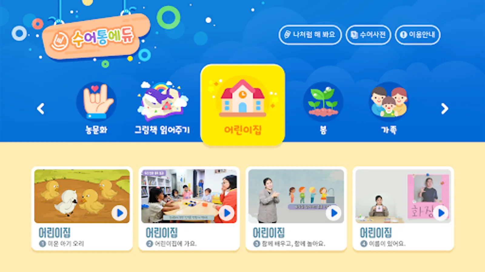 Through Sueo Tong Edu, you can see contents about picture books, deaf culture, etc. in sign language.