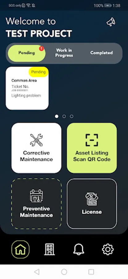 Facility management system that includes submission of corrective and preventive maintenance tickets and asset management.