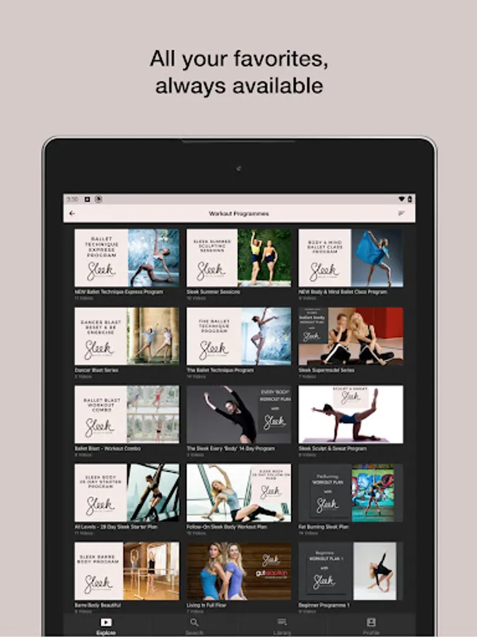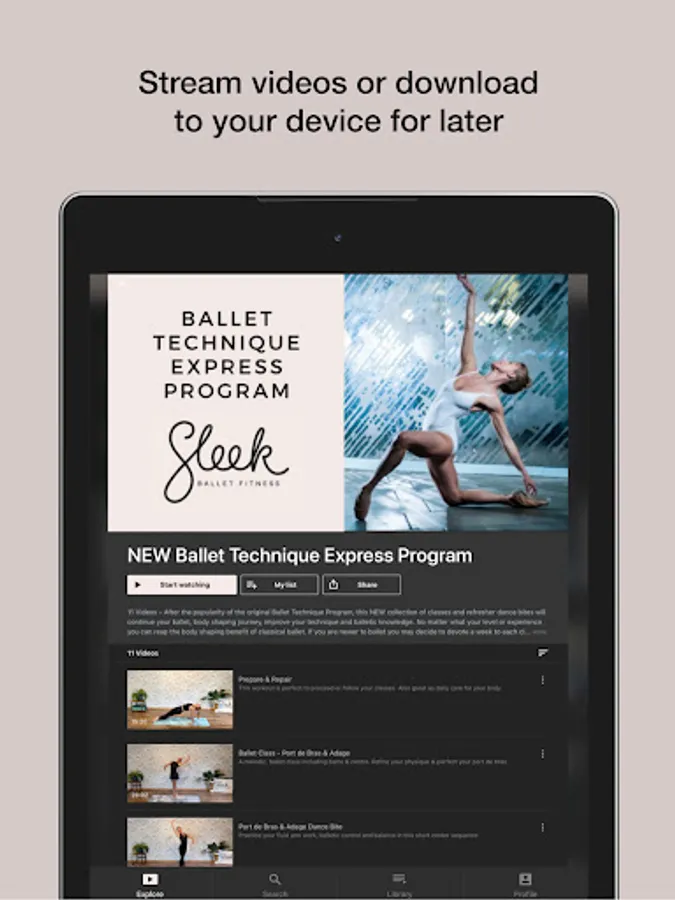 To access all features and content you can subscribe to Sleek Ballet Fitness on a monthly or yearly basis with an auto-renewing subscription right inside the app.* Pricing can vary by region and will be confirmed before purchase in the app. In app subscriptions will automatically renew at the end of their cycle.