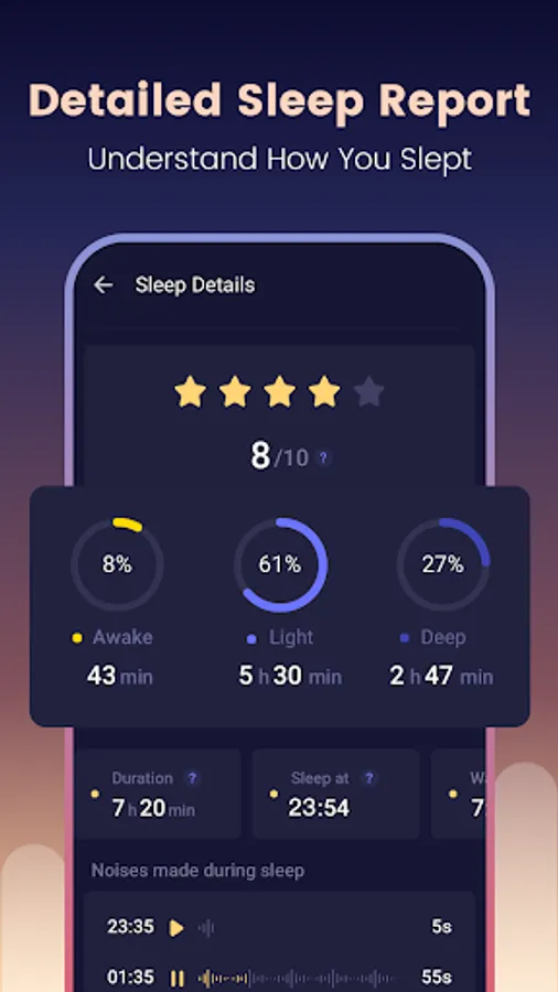 ✨ 3. Detailed and accurate sleep reports for better understanding of your sleep: deep sleep, light sleep, sleep noises and more;
