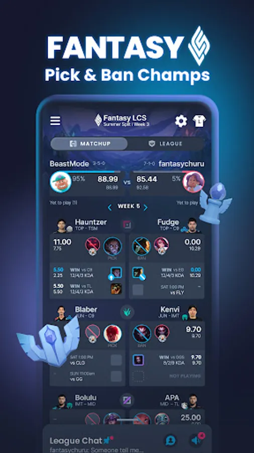 - Draft pro league of legends players to your team