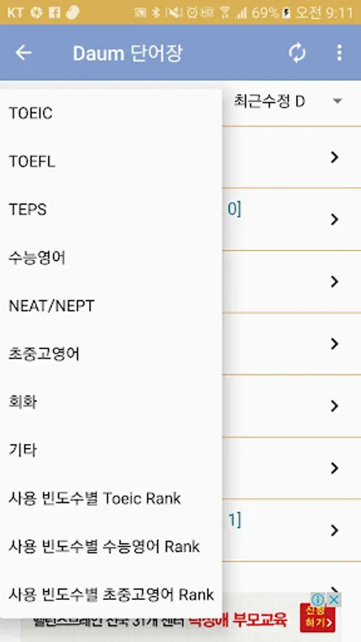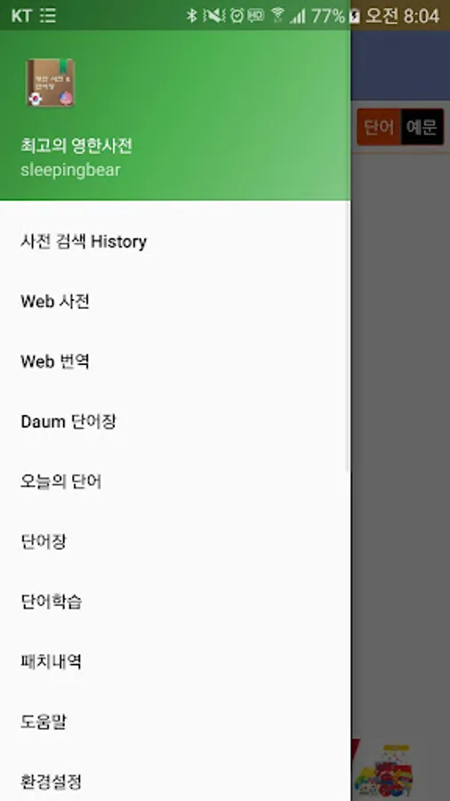 Please use the "best English learning", you can use the English-Korean dictionary, English newspapers, English novel, idioms, Daum vocabulary and word learning function.
