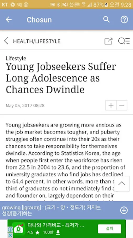 Watching the news articles in English, add the unknown word to the vocabulary.