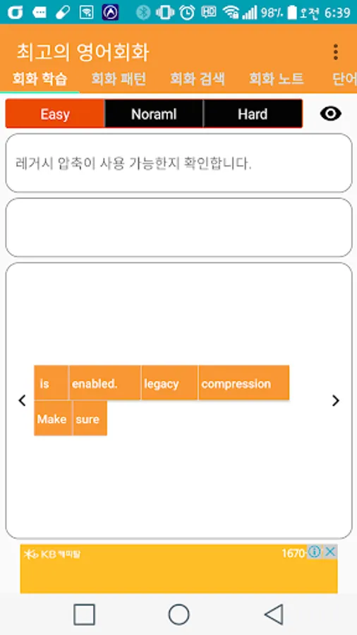 - 회화 학습 : Easy, Normal, Hard 단계별로 학습을 합니다.