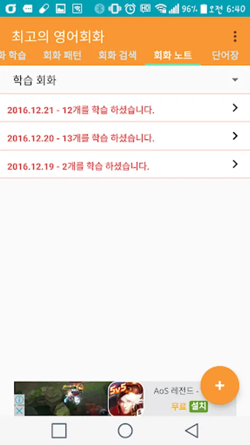 많은 회화 샘플 중에 원한는 문장을 검색하여 나만의 회화 노트를 만들수 있고,