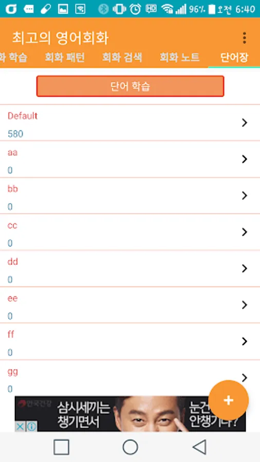 - 단어장 : 회화 학습중에 모르는 단어로 단어장을 만들고, 학습을 할 수 있습니다.